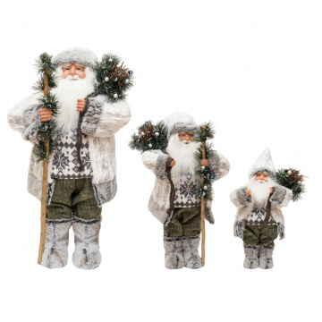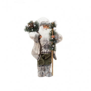 Описание Санта Клаус в серой свитере с посохом 48*24*18см