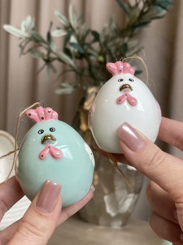 Декор "Цыпленок" – изысканное керамическое украшение для пасхального уюта! Пасха – это не только аромат свежего кулича и крашеные яйца, но и волшебная атмосфера, наполненная теплом и радостью. Очаровательные детали декоративной курочки, такие как аккуратный гребешок и выразительные глазки, добавляют декоративной подвеске курочка особое очарование. Используйте для украшения в весенних цветочных композициях или на праздничном столе.