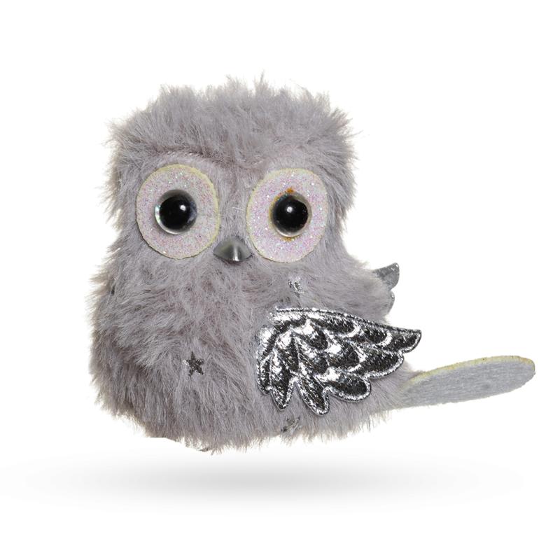 Описание Клипса новогодняя Птичка серая 8х6см