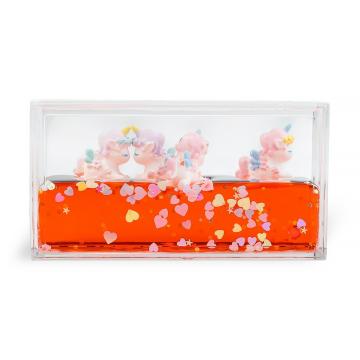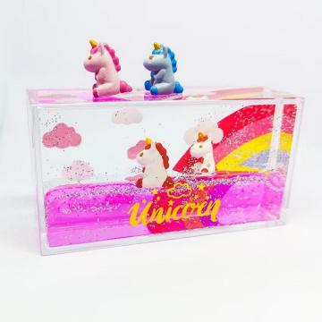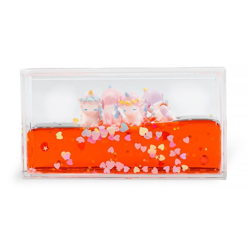Декор с дрейфующей жидкостью "Единорог" – волшебство у вас на столе! Розовая жидкость, парящий единорог и переливающиеся блестки создают эффект магии и легкости. При каждом движении фигурки и звездочки начинают плавно перемещаться, завораживая взгляд. Такой декор станет стильным дополнением для рабочего стола, полки или прикроватной тумбы.