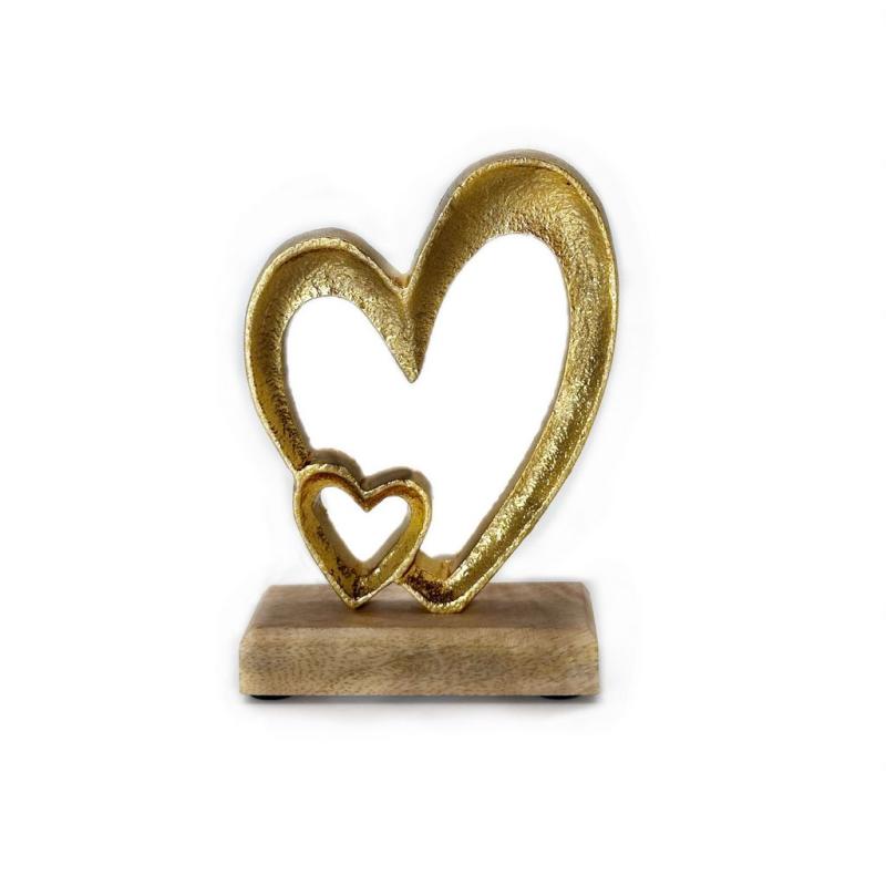 Декор на деревянной подставке алюминиевое Сердце шампань 13,7х9 см