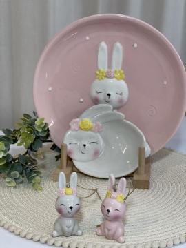 Тарелка декоративная Зайчик розовый 21х3.4см
