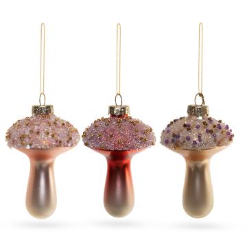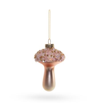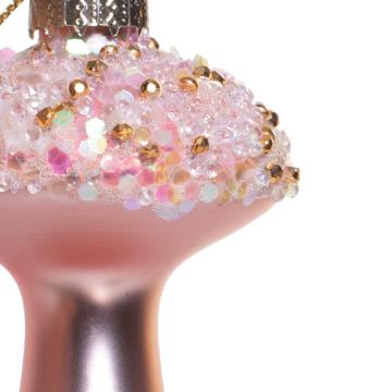 Елочная игрушка Грибок с бисером розовый 9 см