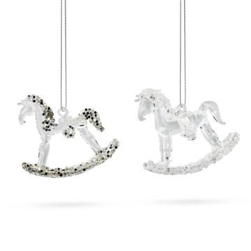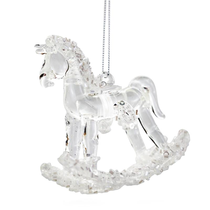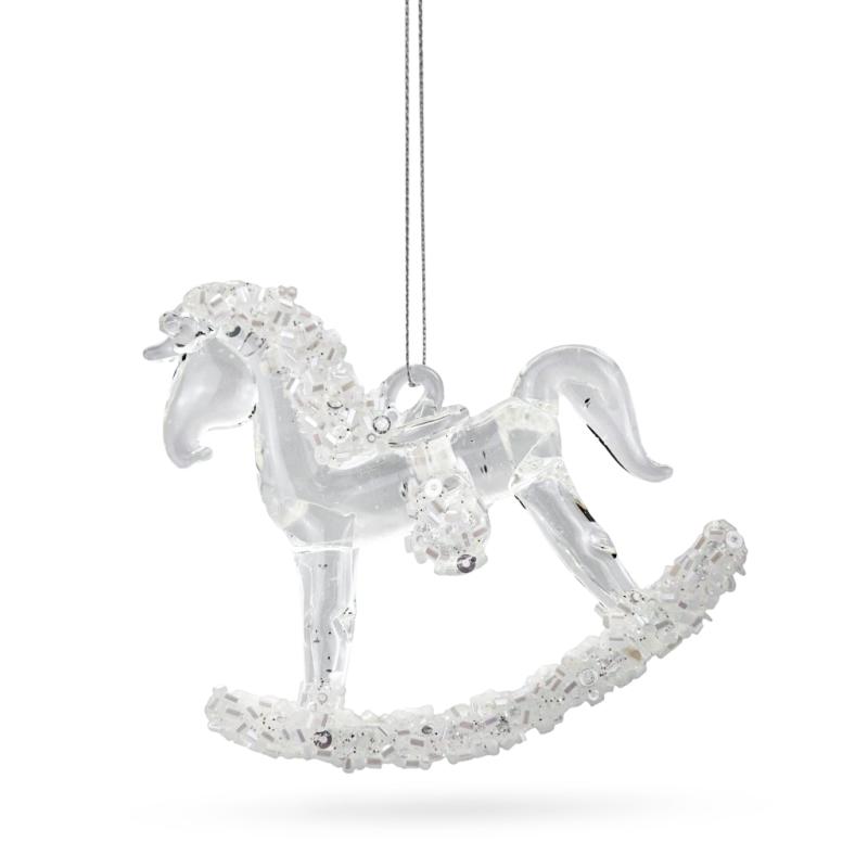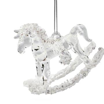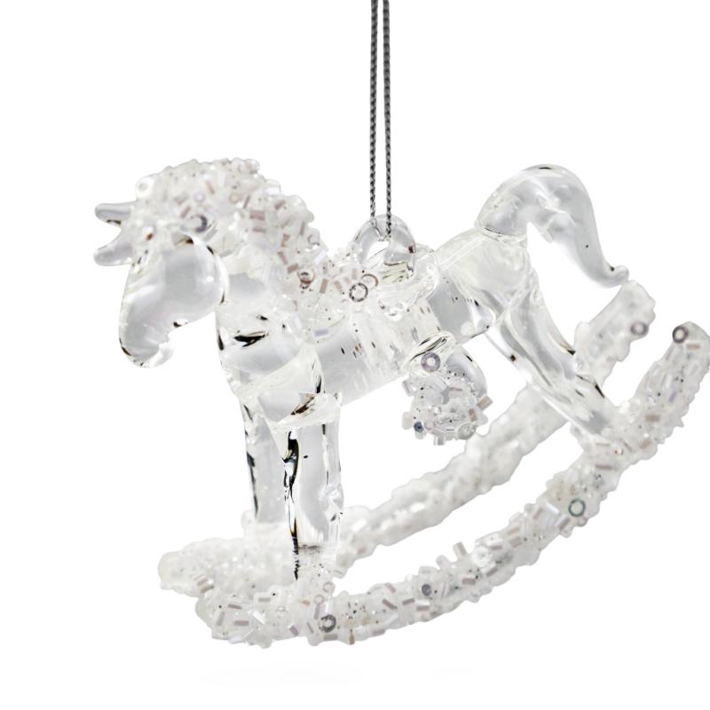 Описание Елочная игрушка Лошадка прозрачная с белым бисером 8,5 см