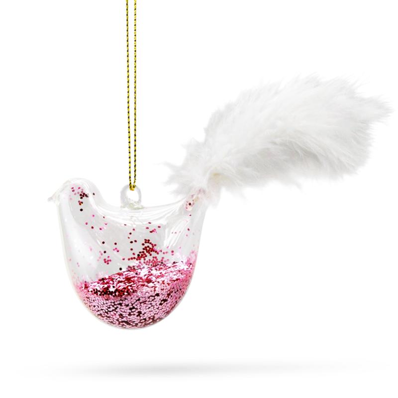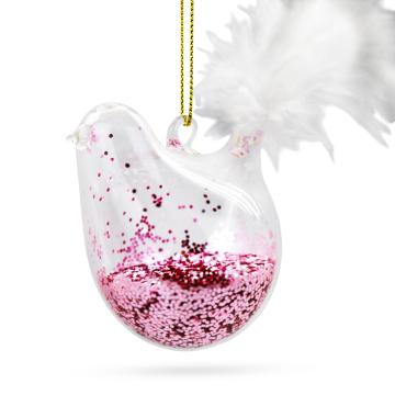 Оживите ёлку в этом году с помощью оригинального ёлочного украшения, которое придаст празднику лёгкость, стиль и особое очарование. Украсьте волшебство вместе со стеклянной изящной птичкой с розовым глиттером и белым хвостом!
