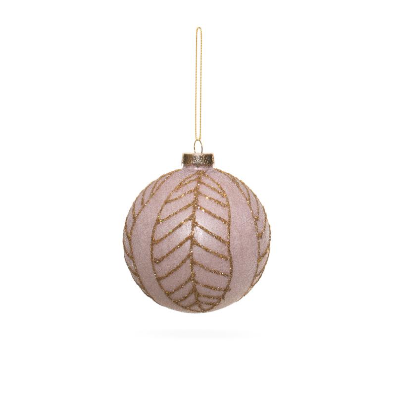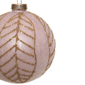 Описание Елочная игрушка Шар золотые листья розовый 8 см