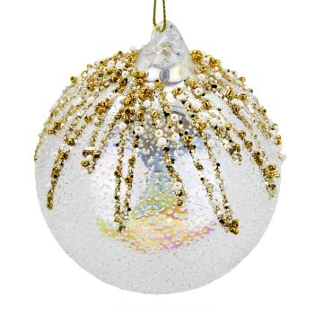 Описание Елочная игрушка Шар прозрачный с золотыми бисером 8 см