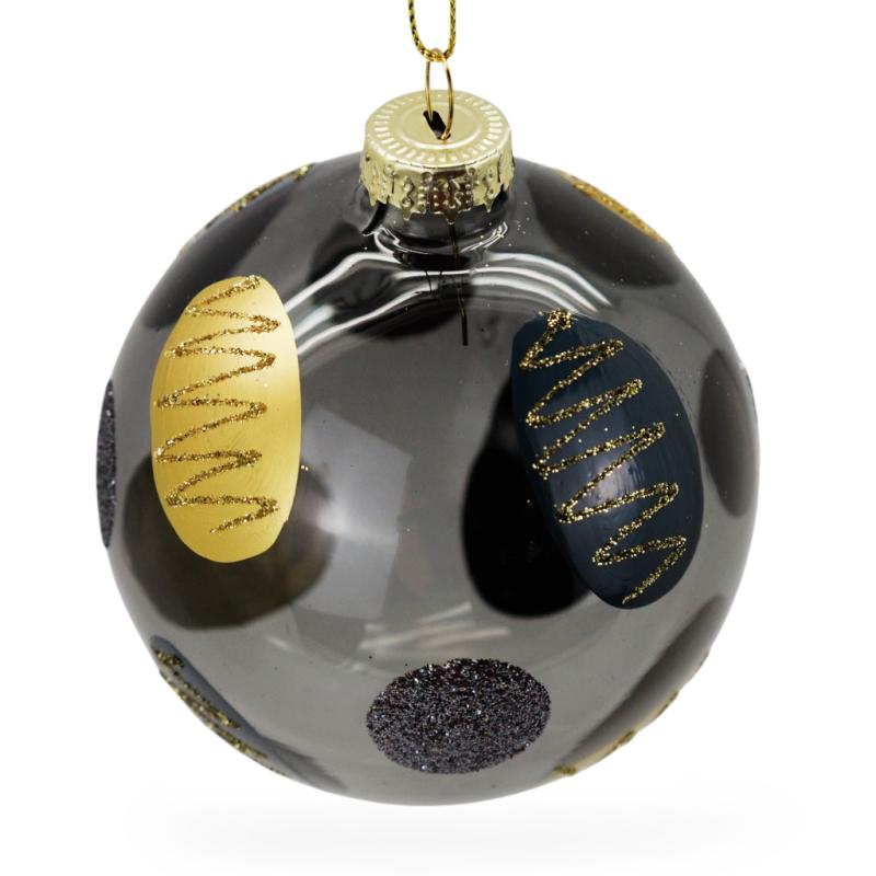 Елочная игрушка «Шар Urban Luxe» — стильный акцент для современной новогодней елки. Дымчатое стекло и контрастные абстрактные элементы с золотыми и чёрными деталями создают эффект глубины и урбанистической элегантности. Шар на елку гармонично сочетается с декором в тёплых металлизированных оттенках: золотом, медью, чёрным, графитовым и даже изумрудным.