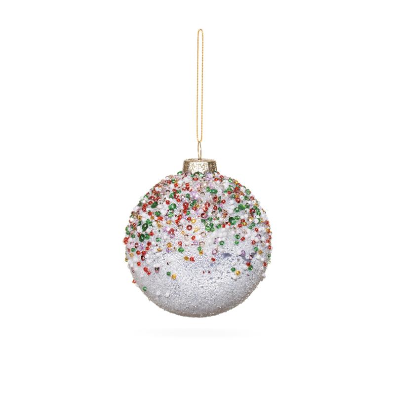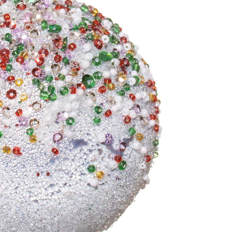 Елочная игрушка Шар с разноцветной бисерной верхушкой белый 8 см