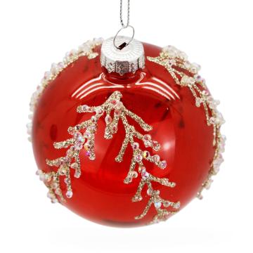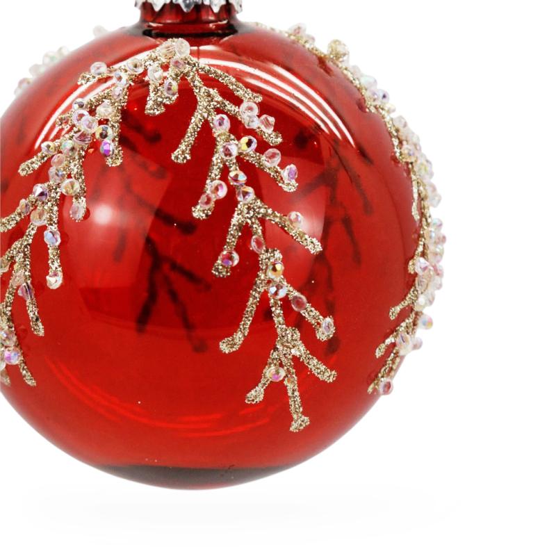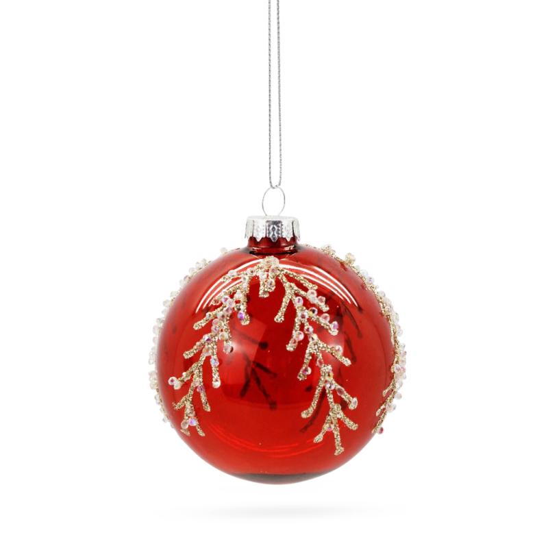 Описание Елочная игрушка Шар с веточками красный 8 см