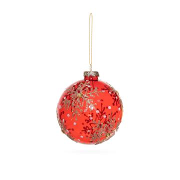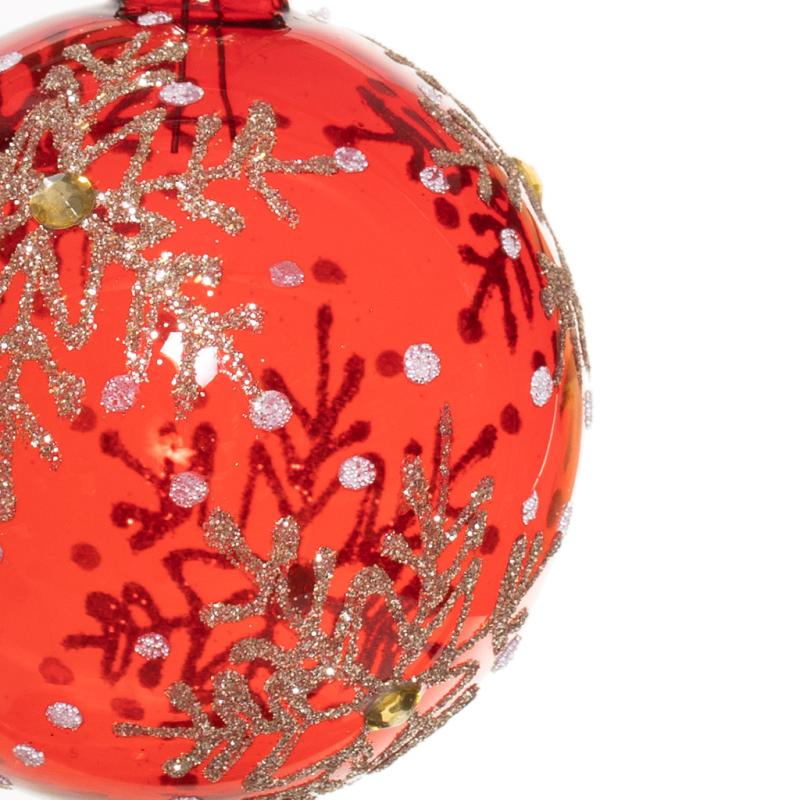 Описание Елочная игрушка Шар Снежинка красный 8 см