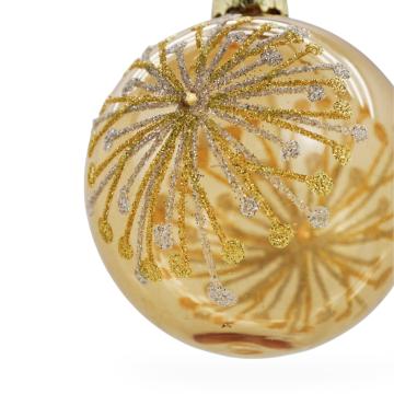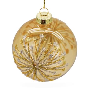 Такой новогодний стеклянный шар станет ярким акцентом в декоре: шар на елку прекрасно сочетается с украшениями в золотой, белой, бордовой и бронзовой гамме. Подойдет для оформления как пушистой ели, так и новогодних венков, композиций на столе или подвесных инсталляций.