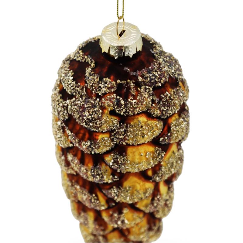 Елочная игрушка Шишка шампань с глиттером 10 см