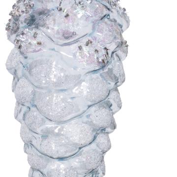 Елочная игрушка Шишка голубая с бело-серебристым декором 12 см