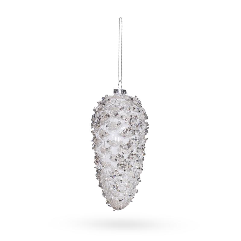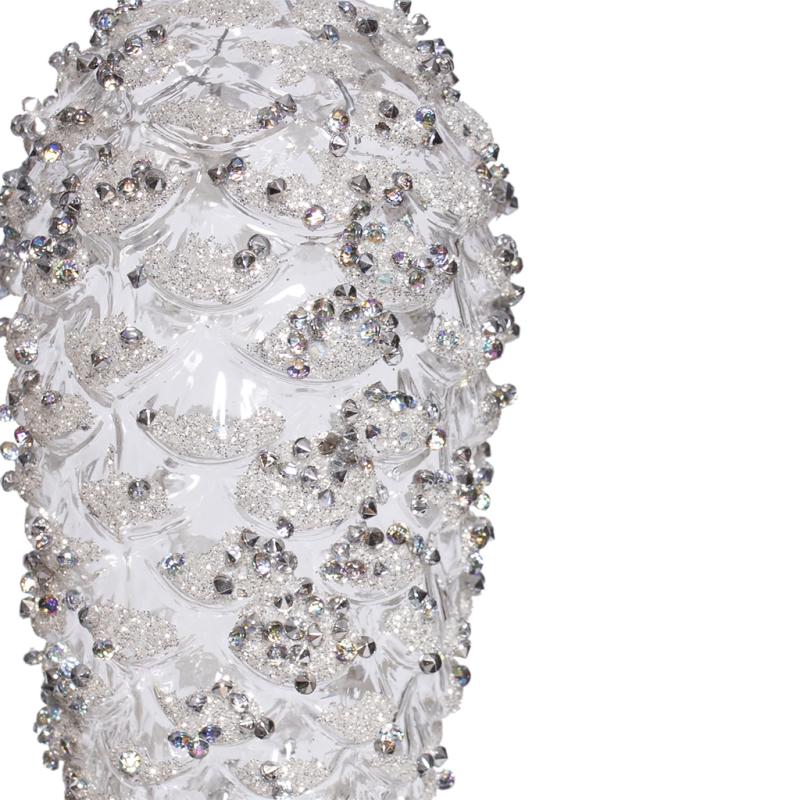 Елочная игрушка Шишка с кристаллами серебристый 15 см