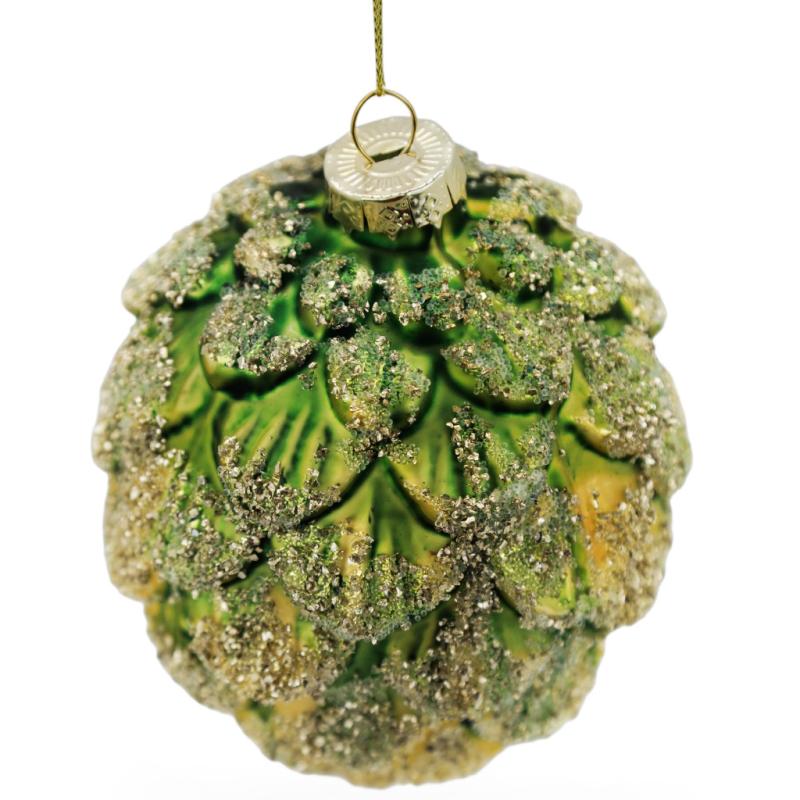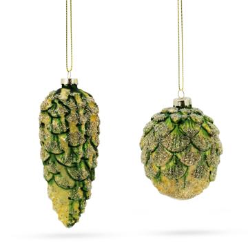 Закажите стеклянную елочную игрушку «Шишка зелёная» уже сейчас — создайте уютную атмосферу лесной зимней сказки прямо у себя дома.