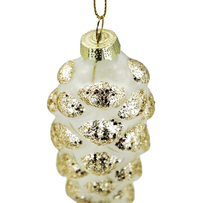 Описание Елочная игрушка Шишка шампань с глиттером 10 см
