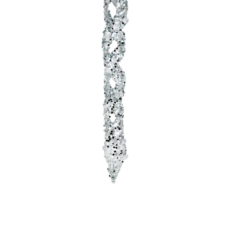 Описание Елочная игрушка Сосулька витая глиттер серебро 19,5 см