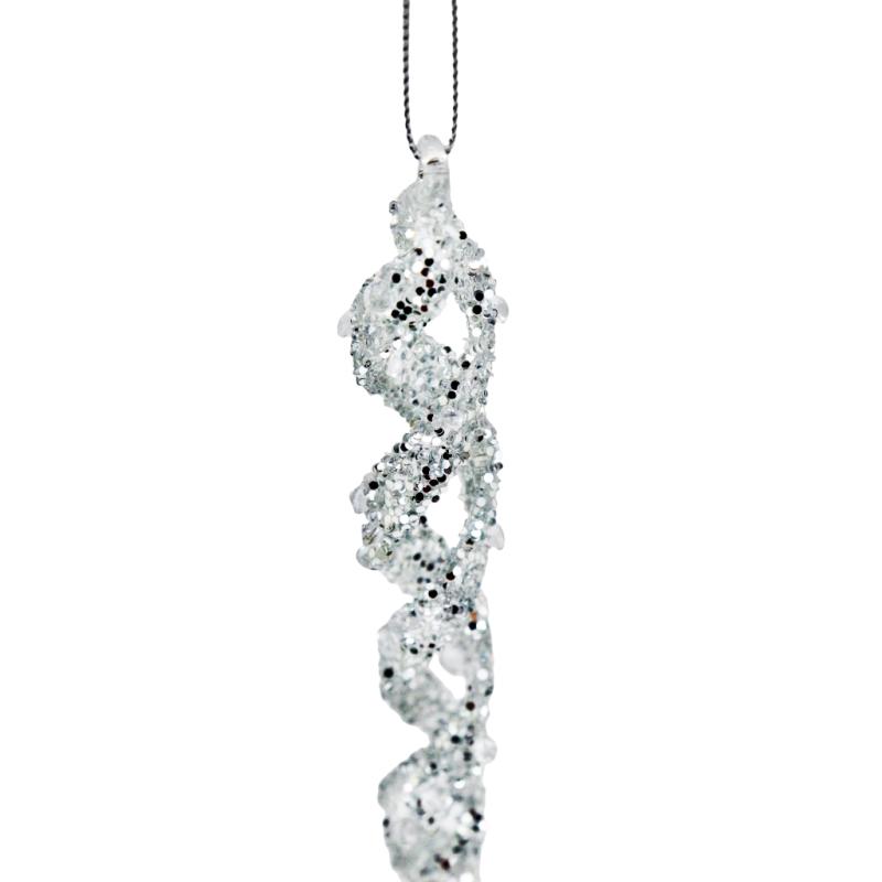 Елочная игрушка «Сосулька витая с серебряным глиттером» — воплощение новогодней магии, застывшей в хрупкой форме. Изысканный узор, переливающийся серебряным глиттером, словно кружево мороза, спустившееся на вашу ёлку. Благодаря сквозной форме и игривому блеску, подвеска ёлочная наполняет пространство воздушностью и праздничным мерцанием.