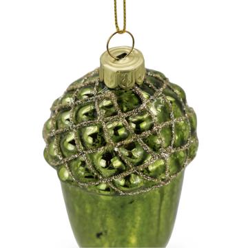 Необычная и эффектная стеклянная игрушка в форме зеленого желудя — это стильное дополнение к новогоднему декору, которое соединяет природные мотивы с праздничным блеском. Глубокий зелёный цвет с лёгкими переливами и аккуратное покрытие глиттером на шляпке создают выразительный акцент на вашей новогодней ёлке. Такая елочная игрушка подойдёт как для классических, так и для эко-композиций, придавая дереву живую текстуру и символику изобилия и удачи.