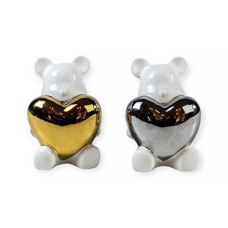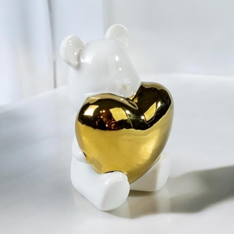 Керамическая фигурка «Мишка с сердцем» –это не просто фигурка, а настоящее выражение любви, заботы и теплых чувств. Миниатюрный медвежонок, держащий глянцевое сердце, станет милым украшением интерьера и прекрасным напоминанием о дорогих людях. Гладкая керамическая поверхность в сочетании с благородным золотым (серебряным) сердцем делает фигурку элегантной и универсальной.