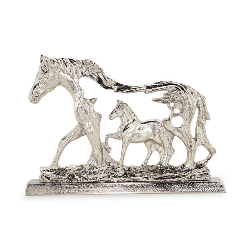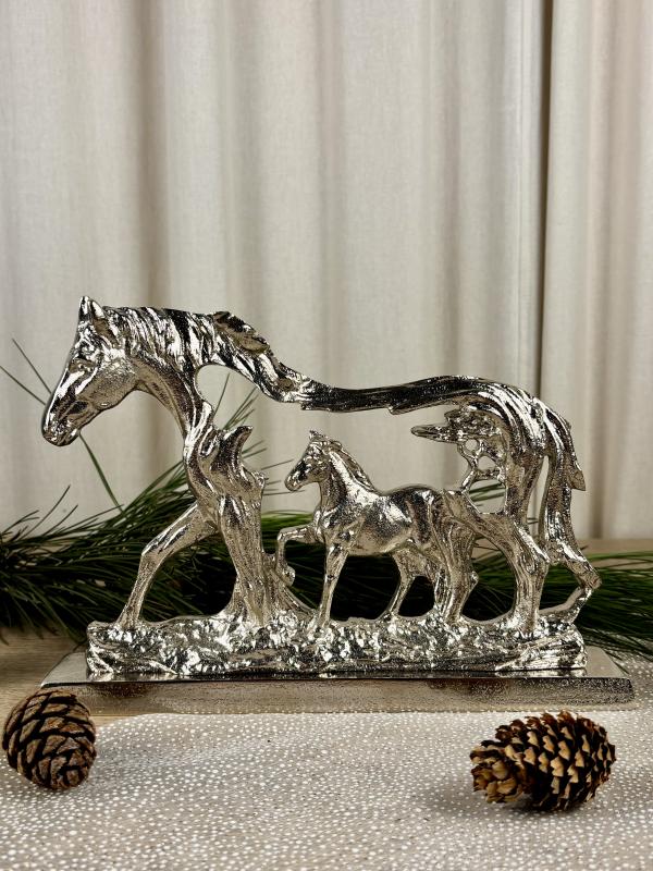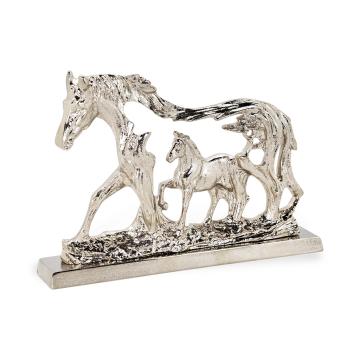 Описание Фигурка алюминиевая Лошадь с жеребенком серебро 20 см