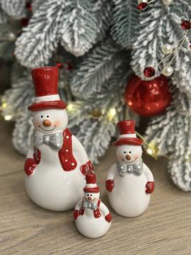 Фигурка керамика Снеговик в красной шапочке 5,8см