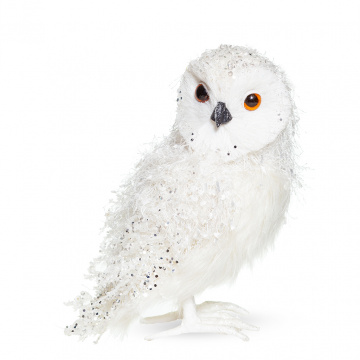 Элегантная, белоснежная с россыпью пайеток птица. Новогодняя сова – загадочная героиня сказок о добре и мудрости. Фигурка разнообразит украшение елки, праздничной зоны, подоконника, полки камина. Устойчивая статуэтка хорошо держится на любой поверхности мебели. Реалистичность образа достигнута за счет отделки из меха, тонкого пуха и живого силуэта. Сова нарядно сверкает серебряными блестками в нарядном интерьере. Коллекция фигурок сов – популярный декор с мотивами новогодней сказки. У каждой птицы свой уникальный образ и характер отображен в деталях. Впечатляют вручную добавленные перышки, сверкающие камушки и глиттер. Желательно соединить несколько сов в одну яркую композицию. Создавайте атмосферный Новый год по-настоящему свежо и оригинально. Поселите на елку фигурку белой совы. Подарите сказочную птицу детям, друзьям.