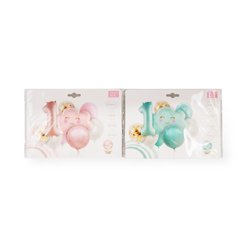 Облачко - 1 шт, "1" - 1шт, круглый фольг. - 1 шт, круглый латекс - 6 шт