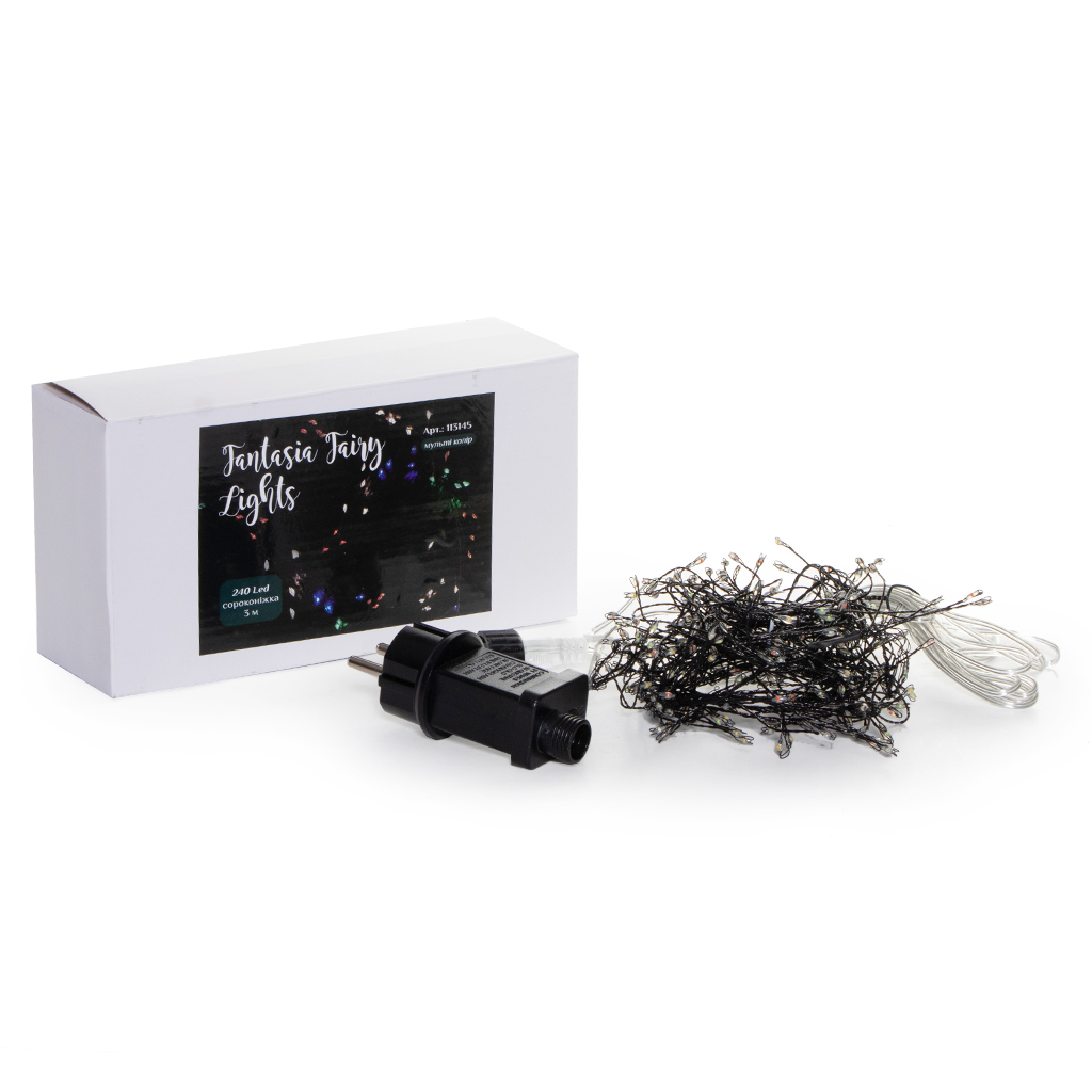 Вы держите уникальную гирлянду-сороконожку, состоящую из 240 микро LED-ламп. Гибкость проволоки позволит вам придать гирлянде желаемую форму, не ограничивая собственную фантазию. Черный цвет проволоки позволит скрыть гирлянду, оставив на виду только волшебное свечение лампочек. Пушистая 3-метровая гирлянда, поможет создать яркий звездный эффект, разместив ее над подоконником, на каминной полке, украшая дом или новогоднюю елку. Адаптер с 8 разнообразными функциями переключения света позволит выбрать желаемую комбинацию цвета и эффект мерцания.Безопасность: Адаптер сертифицирован по стандартам СЕ и RoHS для коммерческого и домашнего использования. Длина кабеля Зм, позволяющая использовать розетки расположенные в сухом и безопасном месте.