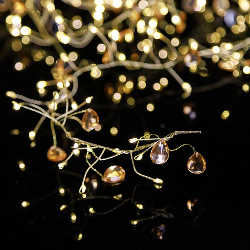 Описание Гирлянда кластер с USB переходником Amber Stones 2м 200LED теплый белый
