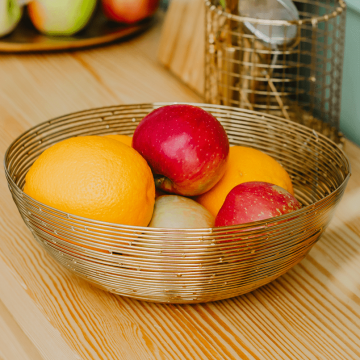 Что помогает усилить характер интерьера? Яркая деталь на видном месте создает настоящие чудеса. Глубокое блюдо из металла – элемент комфортного пространства. Оттенок золота приятно цепляет взгляд издалека. Блюдо в центре комода или стола украшает повседневность кухонного интерьера. Аксессуар удобен для выкладки крупных фруктов, печенья, ассорти десертов. Глубокие блюда из металла представлены в двух размерах S и М. Эффектно сочетаются две модели в одной композиции. Коллекция индийского декора состоит из блюд, корзин и подсвечников в одном стиле. Металл обладает прочностью и антикоррозийными свойствами. Полюбите настроение комфортного интерьера. Устройте радость для глаз гостей в любимом уголке дома. Глубокое блюдо из металла проявится как лучшая покупка для уюта.