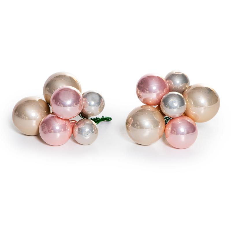 Добавьте к своему празднику немного волшебства с набором елочных игрушек в виде грон кремово розового цвета. В наборе вы найдете 36 уникальных стеклянных игрушек разных диаметров (20, 25 и 30 мм) объеденных в пучки по 6шт. Такое украшение станет ярким акцентом на вашей елке. Необычность елочных игрушек заключается в их многообразии — стеклянные шары разного размера и цвета собраны в готовые уникальные композиции. Они прекрасно сочетаются с другими елочными украшениями и добавят оригинальности вашей елке, а также могут стать идеальным декором для новогоднего венка и еловой композиции.