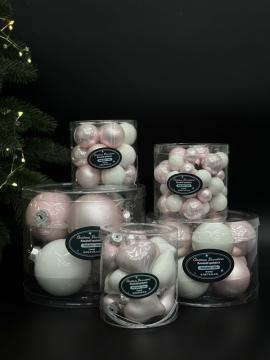 Добавьте к своему празднику немного волшебства с набором елочных игрушек в виде грон розово-белого цвета.В наборе вы найдете 36 уникальных стеклянных игрушек разных диаметров (20, 25 и 30 мм) объеденных в пучки по 6шт. Такое украшение станет ярким акцентом на вашей елке. Необычность елочных игрушек заключается в их многообразии — стеклянные шары разного размера и цвета собраны в готовые уникальные композиции. Они прекрасно сочетаются с другими елочными украшениями и добавят оригинальности вашей елке, а также могут стать идеальным декором для новогоднего венка и еловой композиции.