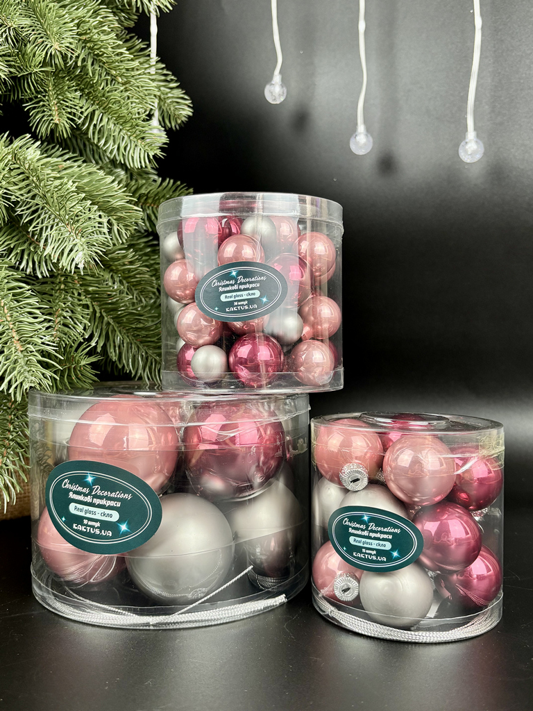 Набор елочных игрушек Шар стекло 6см 10шт серый, розовый