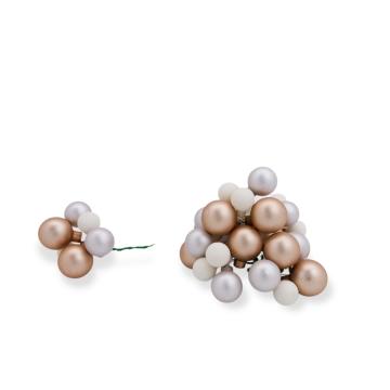 Добавьте к своему празднику немного волшебства с набором елочных игрушек в виде грон в золотистом цвете. В наборе вы найдете 36 уникальных стеклянных игрушек разных диаметров (20, 25 и 30 мм) объеденных в пучки по 6шт. Такое украшение станет ярким акцентом на вашей елке. Необычность елочных игрушек заключается в их многообразии — стеклянные шары разного размера и цвета собраны в готовые уникальные композиции. Они прекрасно сочетаются с другими елочными украшениями и добавят оригинальности вашей елке, а также могут стать идеальным декором для новогоднего венка и еловой композиции.