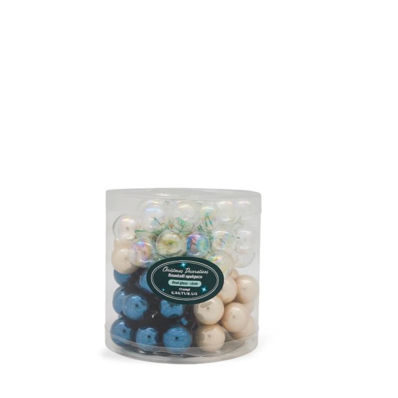 Описание Набор елочных игрушек Гроздья 2см 72шт (6грон) прозрачный, синий, кремовый