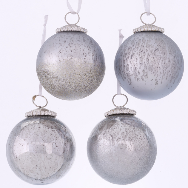 Игрушка елочная Шар стекло 4 вида 8см серебрянный микс (Индия) в магазине Кактус по лучшей цене. Большой ассортимент товаров в категории Все Елочные шары с доставкой по Украине.