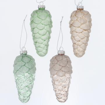 Описание Игрушка елочная Шишка стекло 4 вида салатовый прозрачный микс 12см