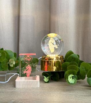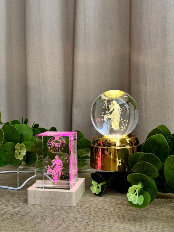 Хрустальный куб с объёмным изображением созвездия Девы на деревянной подставке — это не только стильный элемент декора, но и оберег, отражающий характер этого знака. RGB-подсветка плавно сменяет оттенки, создавая завораживающую игру света внутри кристалла и наполняя пространство особым уютом.