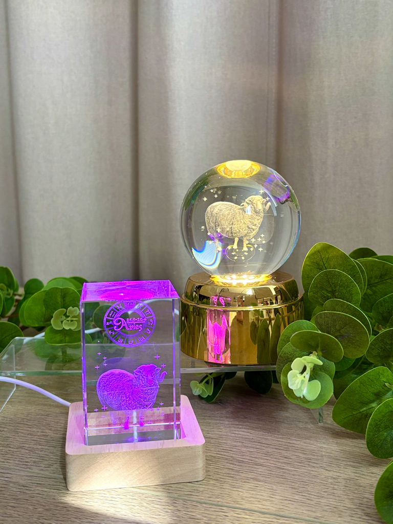 Хрустальный куб с объёмным изображением созвездия Овна на деревянной подставке — это не только стильный элемент декора, но и оберег, отражающий характер этого знака. RGB-подсветка плавно сменяет оттенки, создавая завораживающую игру света внутри кристалла и наполняя пространство особым уютом.