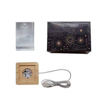Хрустальный куб на деревянной подставке с RGB подсветкой Зодиак Телец 4,5х8см
