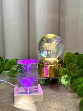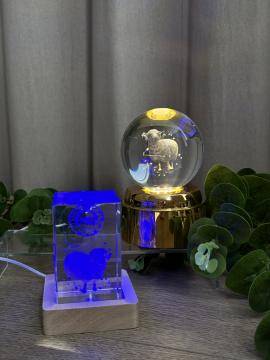 Хрустальный шар на 3D платформе с подсветкой Зодиак Телец 80мм