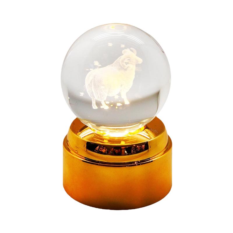 Описание Хрустальный шар на 3D платформе с подсветкой Зодиак Овен 80мм