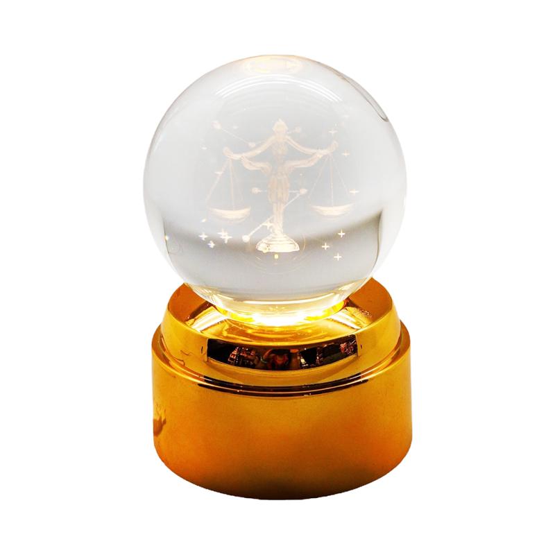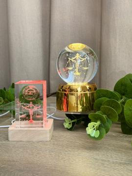 Хрустальный шар с объёмным изображением созвездия Весов на элегантной 3D-платформе с подсветкой — это изысканный акцент в интерьере и символ равновесия, гармонии и стремления к красоте. Тёплое свечение мягко раскрывает глубину кристалла, подчёркивая изящество линий и создавая атмосферу уюта и умиротворения.