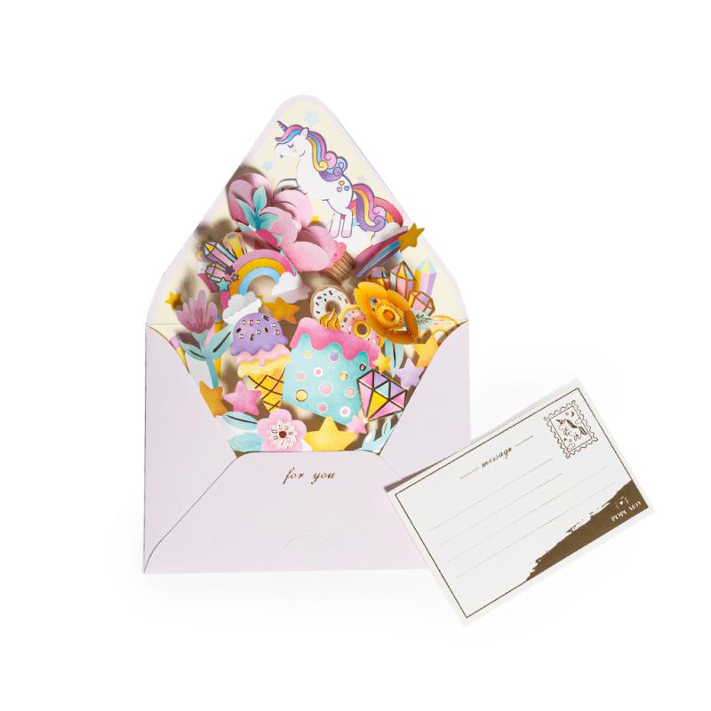 Открытка 3D Единорог Happy Birthday 14х14 см