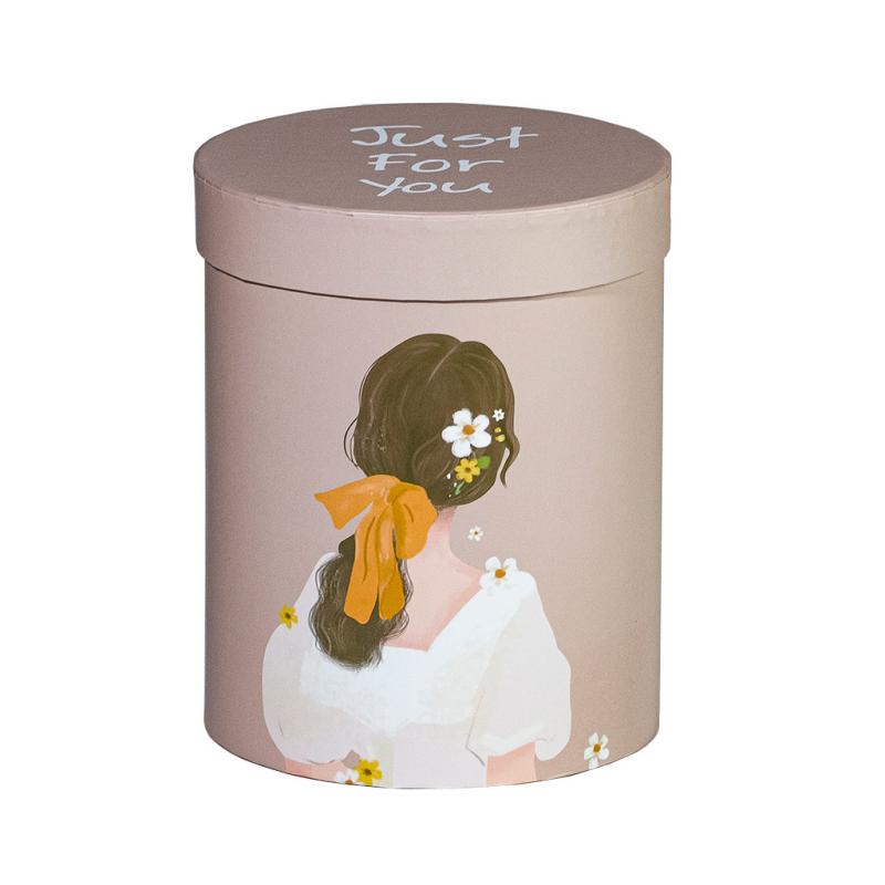 Описание Коробка подарочная цилиндр бежевый с изображением девочки L