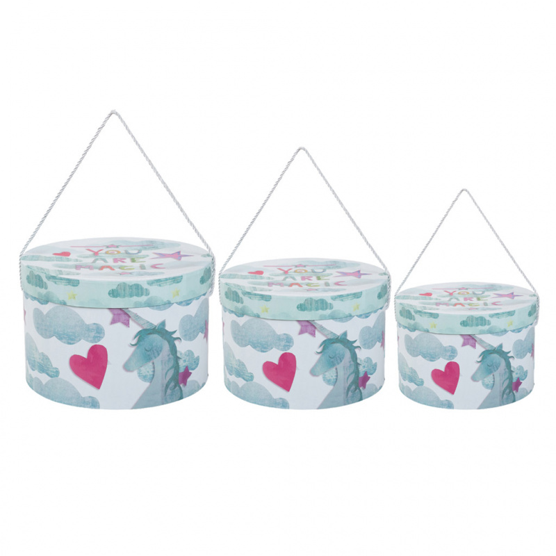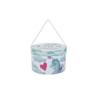 Описание Коробка подарочная Единорог круг S, 23*17см