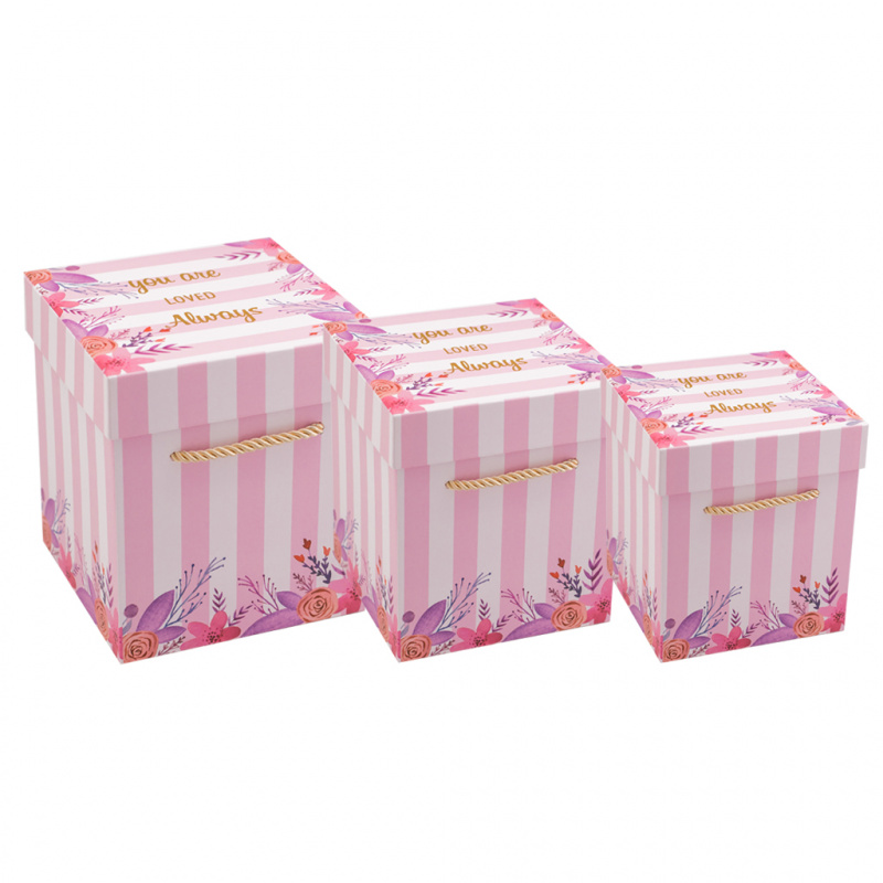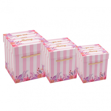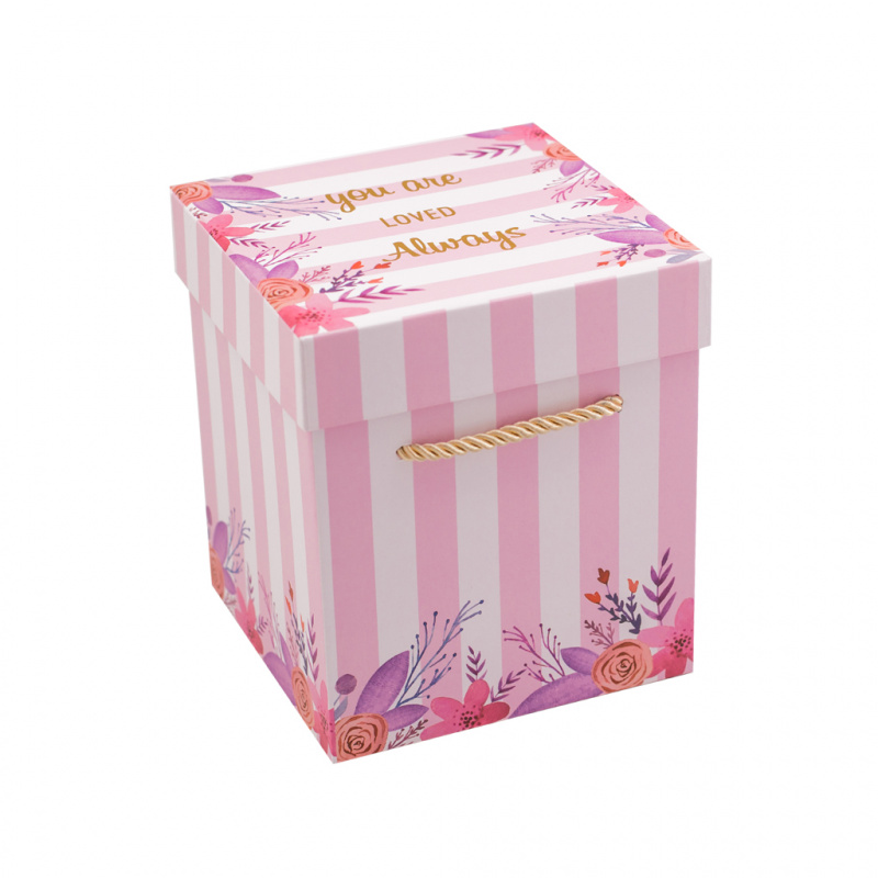 Описание Кор подар квадрат з ручками Рожева Вага M 17*17см
