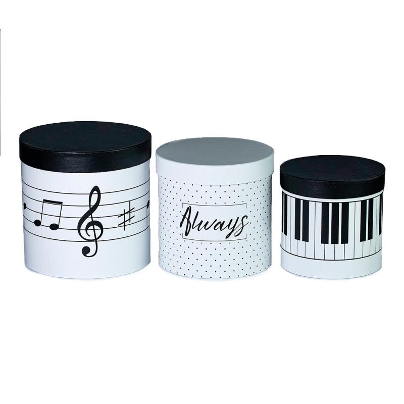 Описание Коробка подарочная цилиндр белый Ноты M